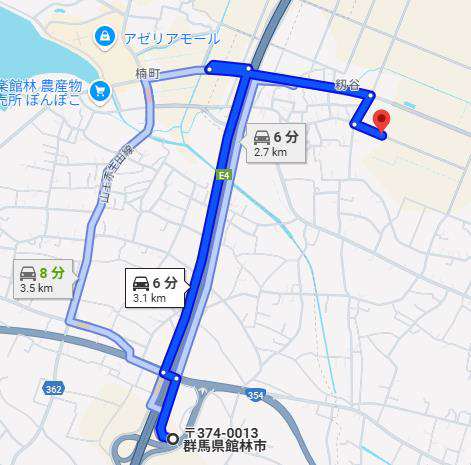 最寄駅 館林駅から車で約15分 徒歩1時間15分