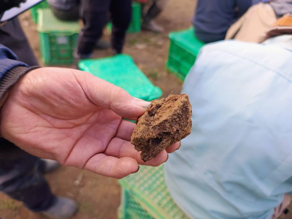 土壌医検定の資格取得者が、実際にどのように改善指導を進めて行くのかを圃場で体験できる、たいへん貴重な学習の場となりました。
