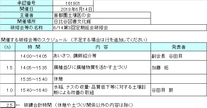 第3回定期総会の議事録が承認されました 2019年7月13日 最終更新日時 : 2024年8月18日 dojyoui 定期総会に引き続き開催した研修会への参加者は43名でした。CPDポイント付与対象者41名(当会会員18名、非会員23名)詳細は事務局へお問い合わせください。 ≪土壌協会へのCPDポイント申請内容は以下の通りです≫