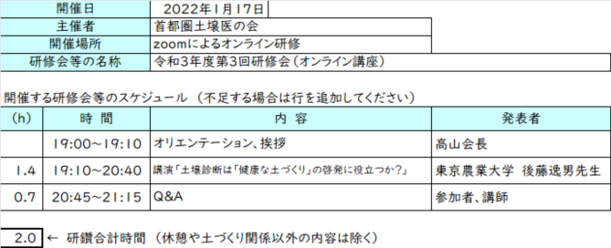 ≪土壌協会へのCPDポイント申請内容は以下の通りです≫