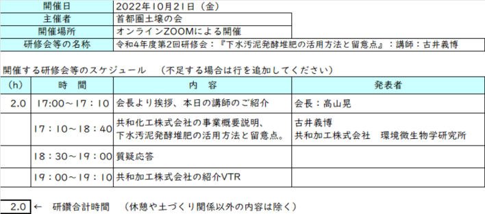 ≪土壌協会へのCPDポイント申請内容は以下の通りです≫